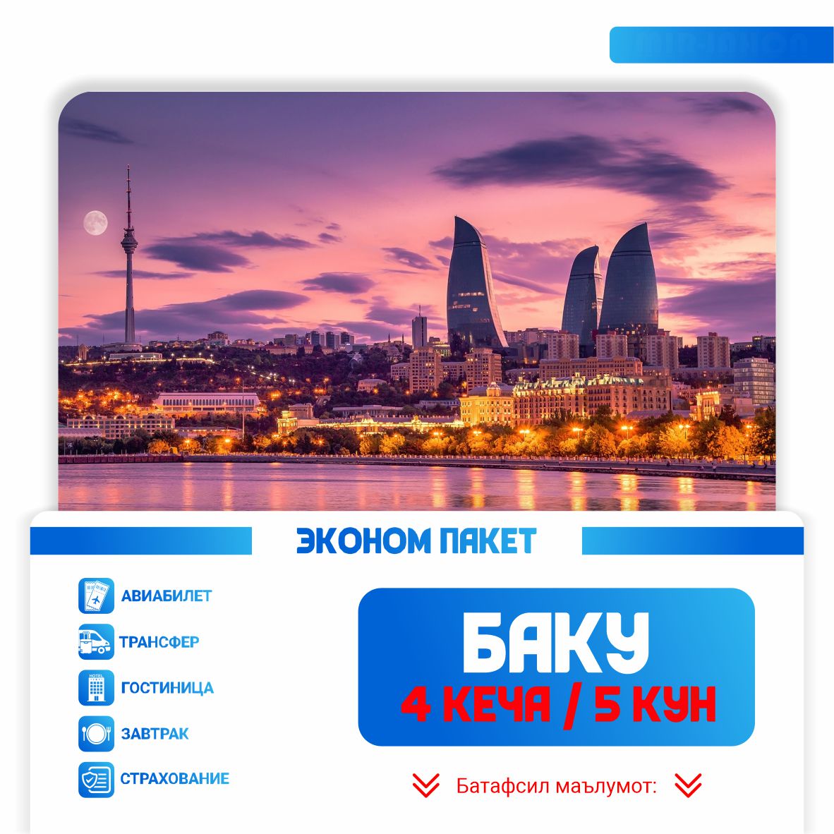 🏨 4 кеча Баку